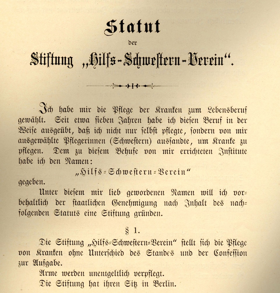 1891 initiiert der Berliner Arzt Otto Olshausen ein „Comité zur Förderung der Krankenpflege in der Familie“ – dieses beschließt die Gründung der Schwesternschaft Märkisches Haus für Krankenpflege.