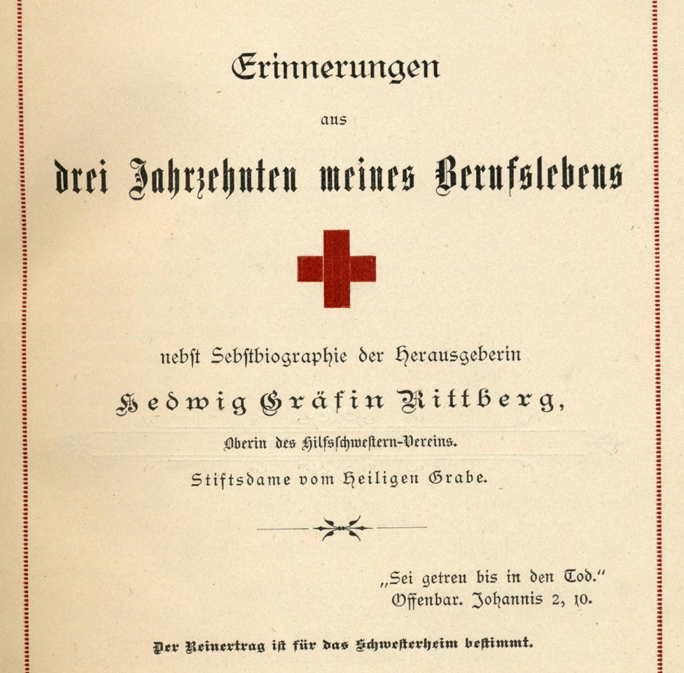 1875 gründet Hedwig Gräfin Rittberg mit zwei anderen Krankenpflegerinnen einen Hilfsschwesternverein – die spätere Schwesternschaft Rittberghaus vom Roten Kreuz.