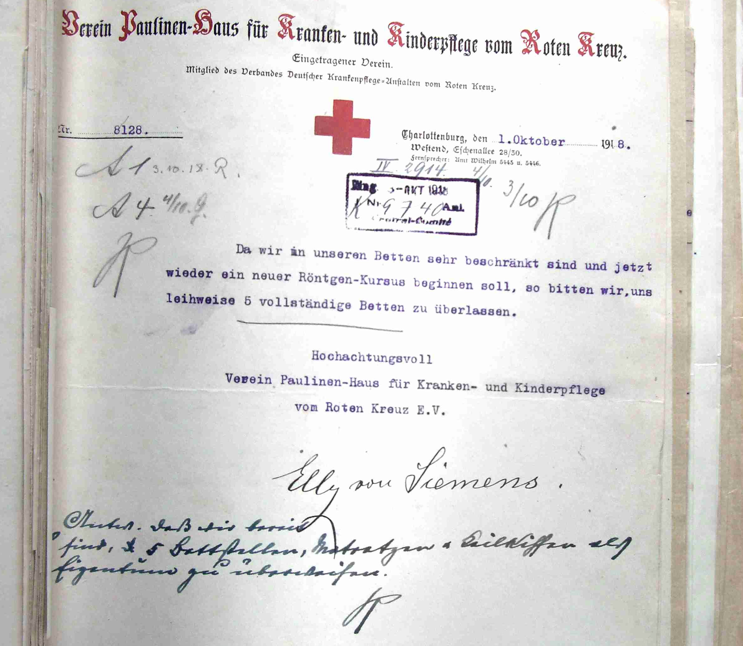1918 erwirbt die Rittberg-Schwesternschaft als erste deutsche Rotkreuz-Schwesternschaft überhaupt eine eigene Klinik: das Rittberg-Krankenhaus in der Carstennstraße – heute Sitz des Generalsekretariats vom DRK.