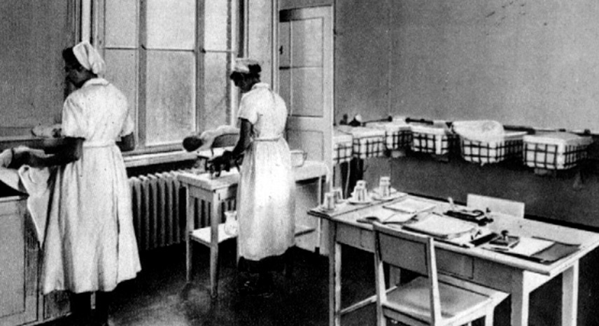 1914 übernehmen die Märkischen Schwestern den Pflegedienst in der Heimstätte für Wöchnerinnen in der Drontheimer Straße – heute die DRK Kliniken Berlin Mitte.