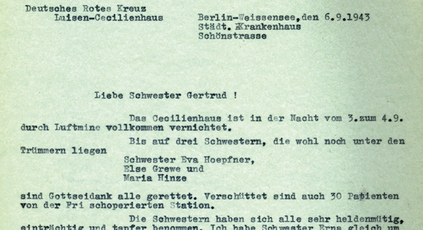 Von 1939 bis 1945 im Einsatz sind 500 Rittbergschwestern, 448 Schwestern vom Märkischen Haus, 255 Paulinenschwestern, 227 Schwestern der Luisen-Cecilienschwesternschaft.