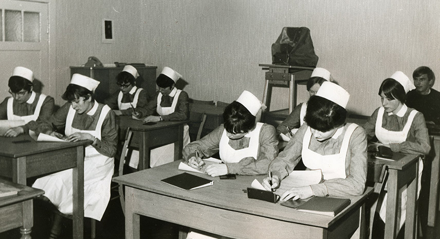 1970 legen alle Berliner Rotkreuz-Schwesternschaften ihre fünf Krankenpflegeschulen zusammen.