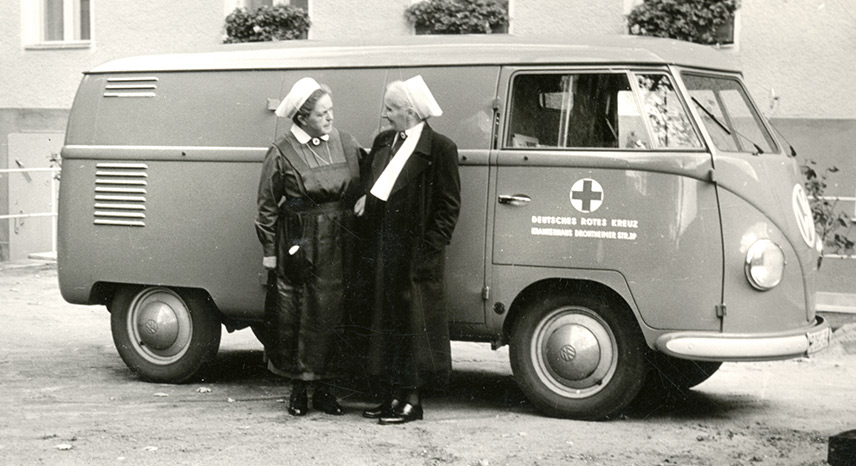 Der Bau der Mauer am 13. August 1961 verändert alles. Schwestern aus Ost-Berlin und dem Umland verlieren ihren Arbeitsplatz. Der Kontakt zum Mutterhaus im Westen der Stadt beschränkt sich auf Telefonate und Briefe. Erst das Passierscheinabkommen ermöglicht ein Wiedersehen.